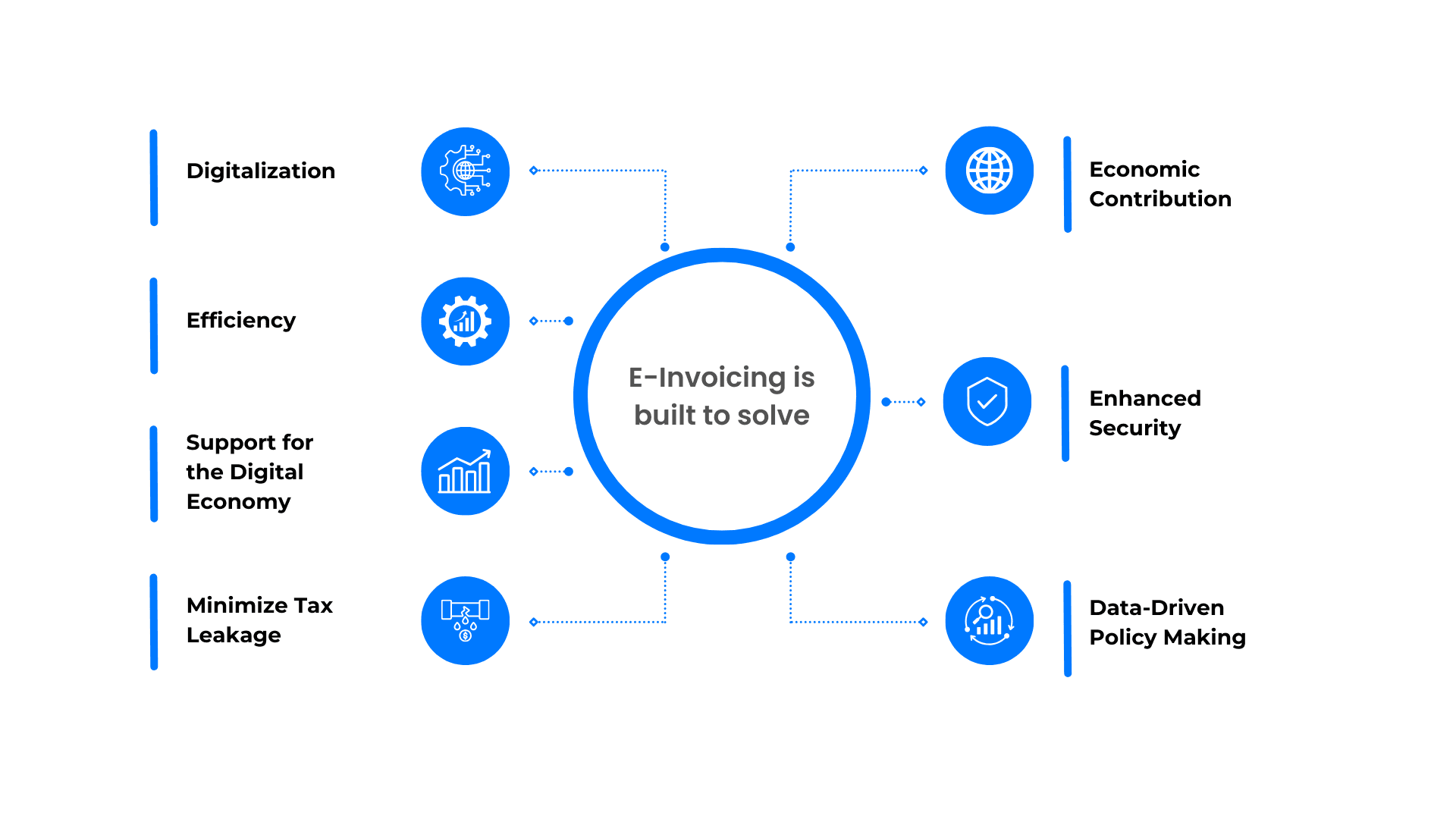 E-invoicing solves this by giving tax authorities real-time access to transactional data, enabling faster decisions, stronger enforcement, and greater transparency.